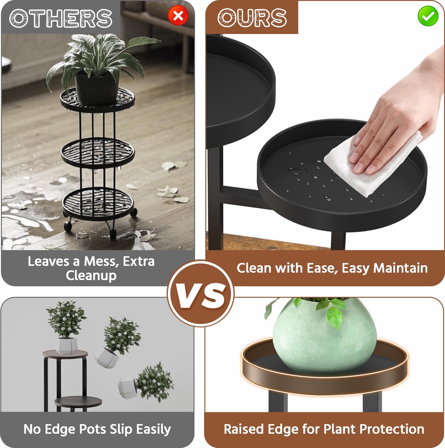 • 【 Keep Floors Dry with Edge Trays】Say goodbye to water stains on your floor! The 3 tier plant stand come with edge trays that catch any overflow, keeping your plants safe and your floor nice and dry. No more worrying about water damage when caring for your indoor plants!