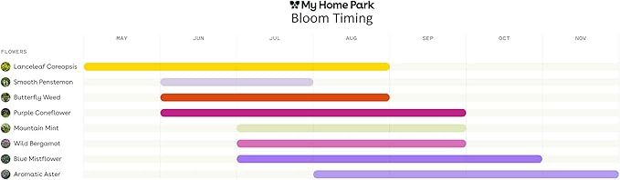 - POLLINATOR MAGNET: This garden kit attracts and supports vital pollinators, including birds, butterflies, bees, and beneficial insects. Featuring 8 Purple Coneflower, 8 Butterfly Milkweed, 8 Aromatic Aster, 12 Blue Mistflower, and 4 Wild Bergamot, these plants provide essential nectar sources for pollinators throughout the growing season.