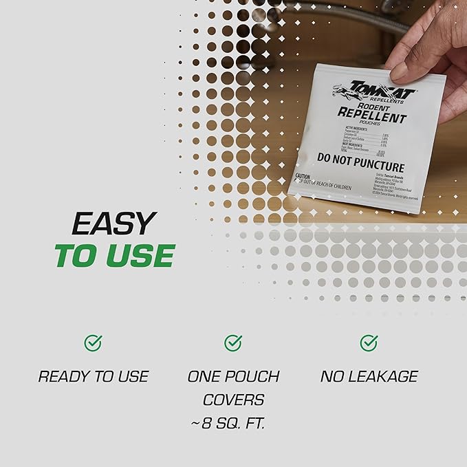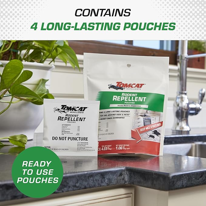 - Tomcat Rodent Repellent Pouches provides ready-to-use, inside rodent protection, preventing rodent entry, nesting, and foraging in your home