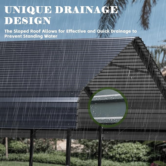 - Sturdy And Comfortable: Our heavy duty metal carports are constructed from multiple 40*40*1mm square tubes and several 20*40*1mm support poles. Compared with the assembled structures of other products, our square tubes are thicker and more stable.we adopted a triangular design with the roof tilted to both sides, and the surface is designed to be rain-proof and leak-proof, which not only ensures stability, but also provides users with comfort and peace of mind in rainy and snowy days.
