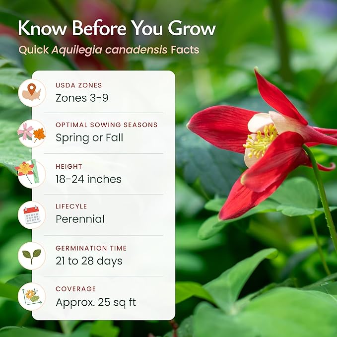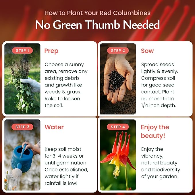 - NON-GMO SEEDS SOURCED IN USA: No fillers, just premium perennial wildflower seeds with high germination rates. Grown and packaged in the USA for quality and reliability, ensuring a lush, natural landscape with beautiful red columbine flowers.