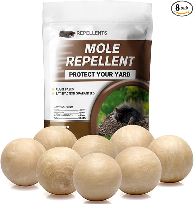 Mole Repellent Outdoors, Powerful Mole Repellant for Lawns, Vole Repellent, Gopher and Groundhog Repellant Outdoor, Mole Control, Safe for Lawn and Garden- 8P