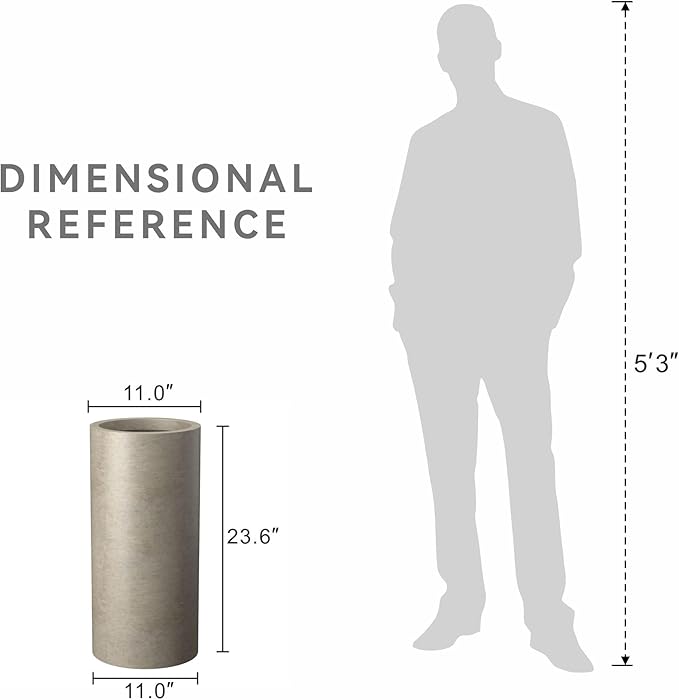 Kante 23.6 Inch Tall Cylindrical Planter, Large Round Plant Pots with Drainage Hole, Made with Concrete, Suitable for Indoor Outdoor Plants, Home Decor, Weathered Concrete