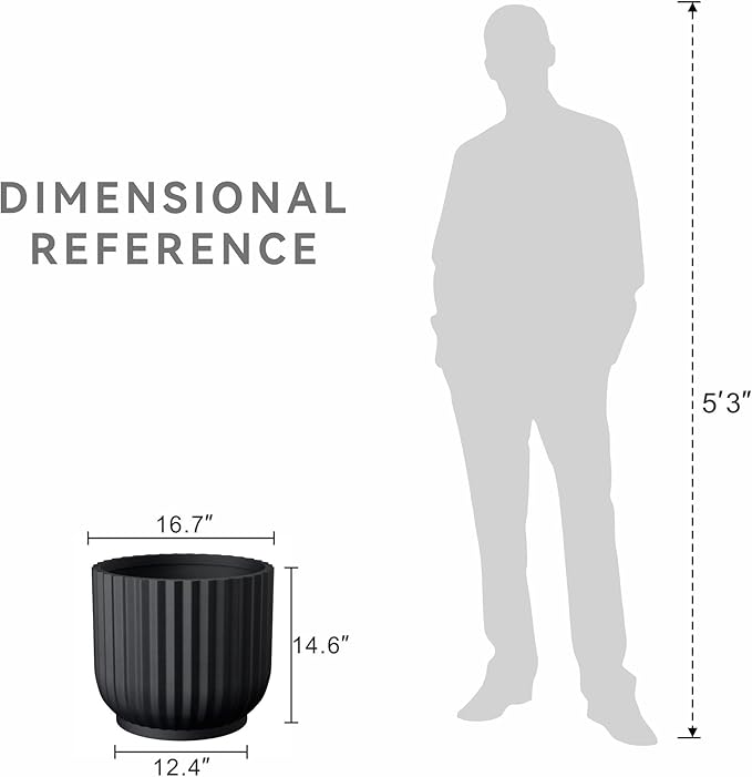 - Large & Versatile β Whether displaying a vibrant plant indoors or elegantly placed on your front steps, porch, or patio, this spacious planter effortlessly adapts to any setting. Its distinctive style complements a wide range of dΓ©cor, from modern and minimalist to traditional, adding a touch of sophistication and charm to your space.