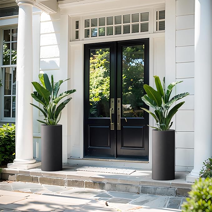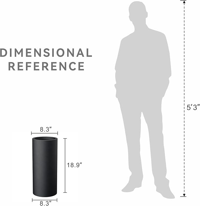 Kante 18.9 Inch Tall Cylindrical Planter, Large Round Plant Pots with Drainage Hole, Made with Concrete, Suitable for Indoor Outdoor Plants, Home Decor, Black