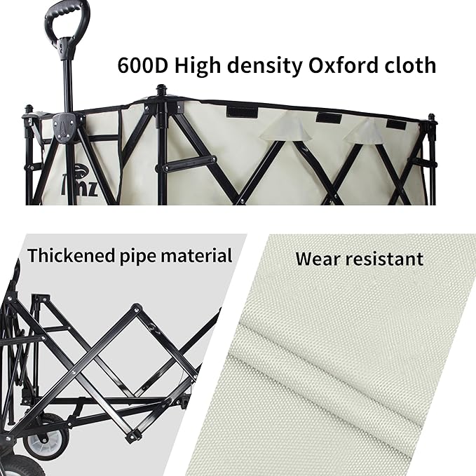 - DURABLE MATERIAL: The trolley is made of X-shaped steel structure and 600D*600D polyester fabric, which is strong and durable, with a load capacity of up to 265 lbs, which is suitable for a variety of scenarios, such as shopping, transportation, camping, picnic, fishing and so on.