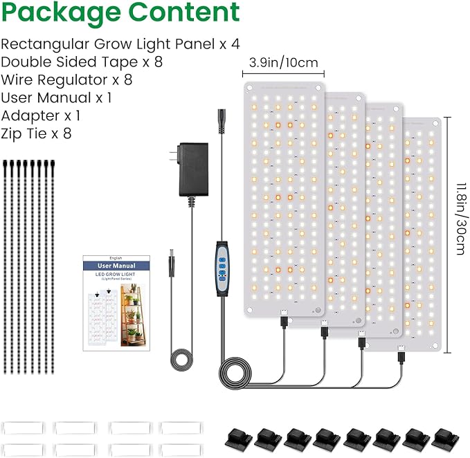 - Light and Thin Grow Light: This lightweight indoor plant light panel is easy to hang using just the included cable ties or double sided tape, hiding it under shelves or cabinets, saving space and not adding any extra weight.