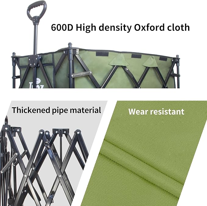 TMZ Collapsible Wagon 445L Extra Large Outdoor Utility Cart, Heavy Duty Carts Foldable with All-Terrain Big Wheels, Canopy and Brakes, Utility Beach Wagon for Outdoor Garden (Green)