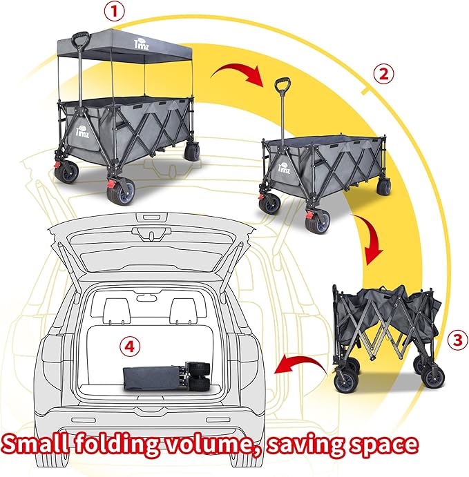 - EASY TO CARRY: TMZ unique 4-sided folding design, transport trolley folded very compact, can be easily stored in the trunk of the car or storage room, does not take up space, anytime, anywhere you can go.