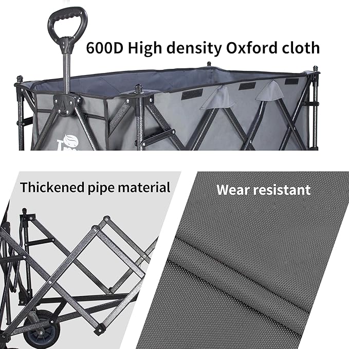 - DURABLE MATERIAL: The trolley is made of X-shaped steel structure and 600D*600D polyester fabric, which is strong and durable, with a load capacity of up to 265 lbs, which is suitable for a variety of scenarios, such as shopping, transportation, camping, picnic, fishing and so on.