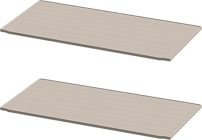 - The dimensions of the shelves in the outdoor shed are 44.29 * 22.24 * 0.67 inches, which are suitable for storage sheds with dimensions of 48 * 25.5 * 37.1 inches.
