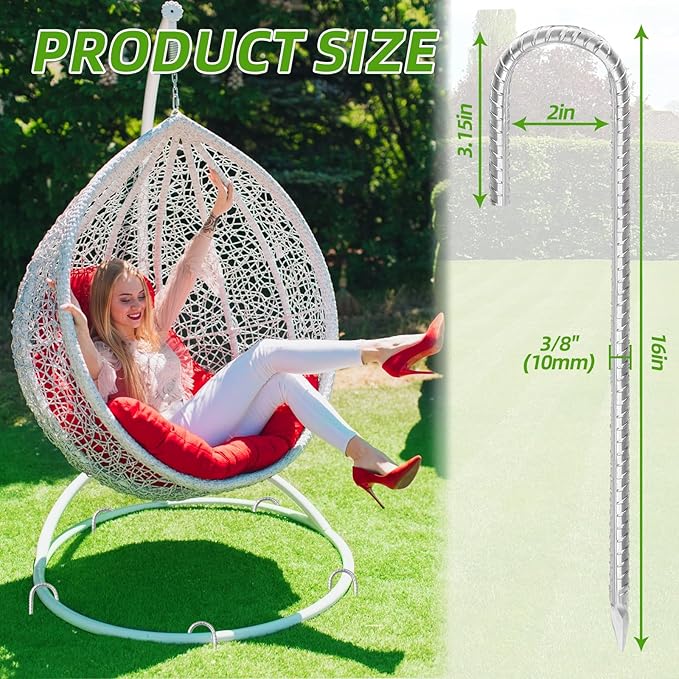 - 【16Inches Rebar Stakes】The Metal Stake Sold In Bundles Of 8 Pieces.16Inches Length From Tip To Hook,3/8Inch (10mm) Diameter J Stakes.The Hook Is 3.15" And Spacing Is 1.97",Have A Cutting-Edge Bottom Design Pefect for Feed Garden,Camping Tents,Greenhouse,Canopies,Gazebos And Giant Inflatables Etc To Conquer Any Terrain With Confidence! The Surface of The Ground Stakes Has A Galvanized Coating, Letting You Say Goodbye To The Worry Of Rust And Ensuring Repeated And Long-Term Use!