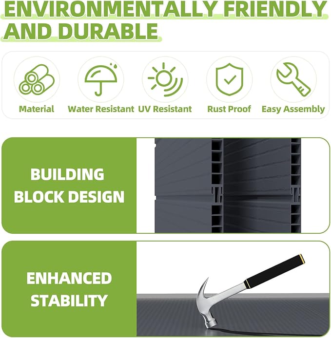 - 【All-Weather Durability】: Crafted from premium resin material, this shed is waterproof, UV-resistant, and windproof. It won't rust, fade, or rot, standing up to rain, snow, sun, and wind without cracking or discoloring.