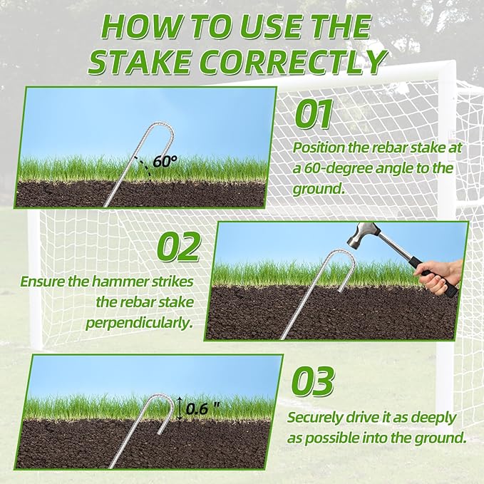 - 【Sharp Ends Rebar Stakes Heavy Duty】Our Heavy-Duty Rebar Stakes Feature Sharp,Chisel-Pointed Ends That Effortlessly Penetrate Various Surfaces,Including Dirt,Grass,Sand,And Hard Soil.Made From Thick,Sturdy Metal Steel,They Resist Deformation And Remain Stable In Strong Winds . No Tools Are Needed—Simply Push or Step On Them To Secure Them Into The Ground.