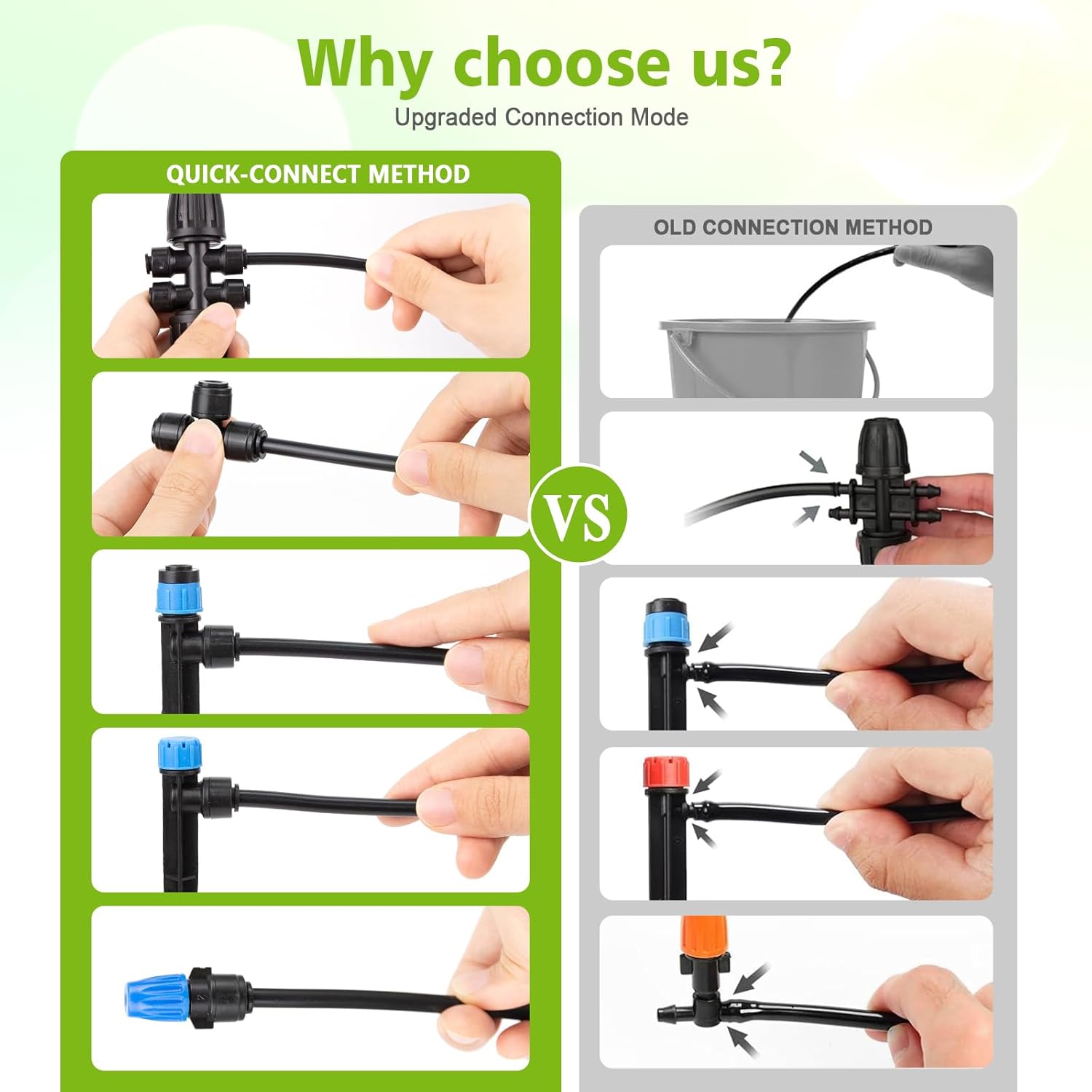 - INNOVATIVE QUICK CONNECTOR TECHNOLOGY: Our plug-and-play irrigation pipe adopts a new quick connector design to ensure a secure installation and prevent water leakage, making installation a breeze and saving you time and energy