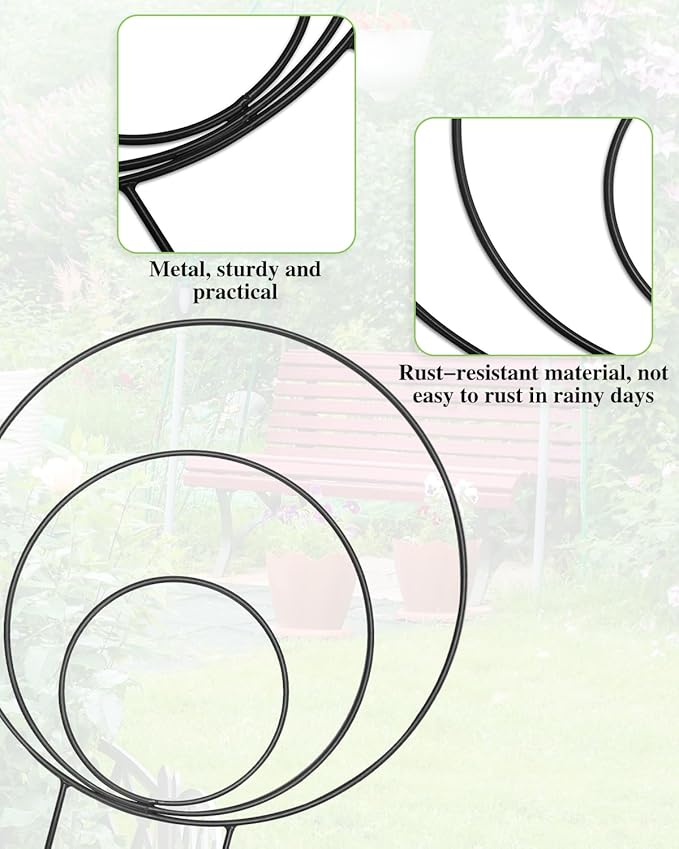 - VERSATILE DESIGN: Set of 3 black round metal plant trellises in different sizes, perfect for supporting climbing plants, ivy, and flowers both indoors and outdoors