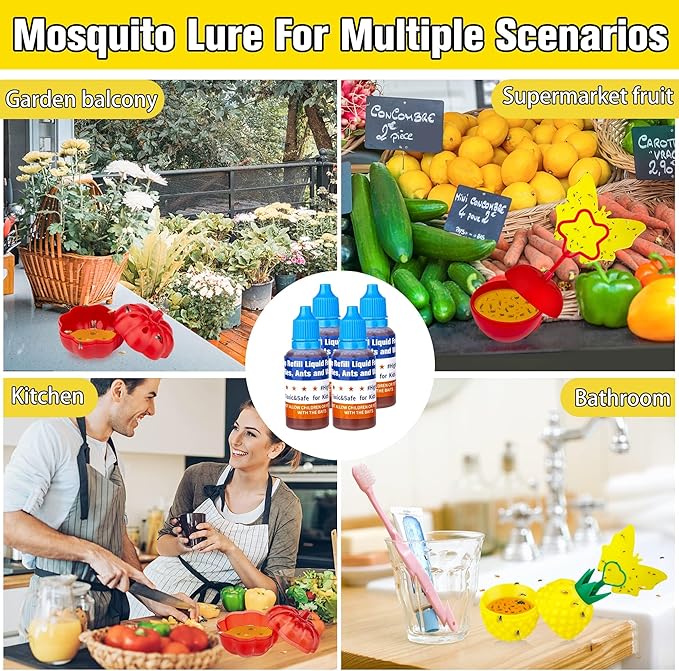 - Efficient Fruit Fly Killer Indoor Traps:Our fruit fly trap bait refill effectively attracts, traps, and kills fruit flies. It is recommended to use with a fruit fly trap for better results. The indoor fruit fly killer emits a scent that lures fruit flies into the trap's entry hole, where they cannot escape.