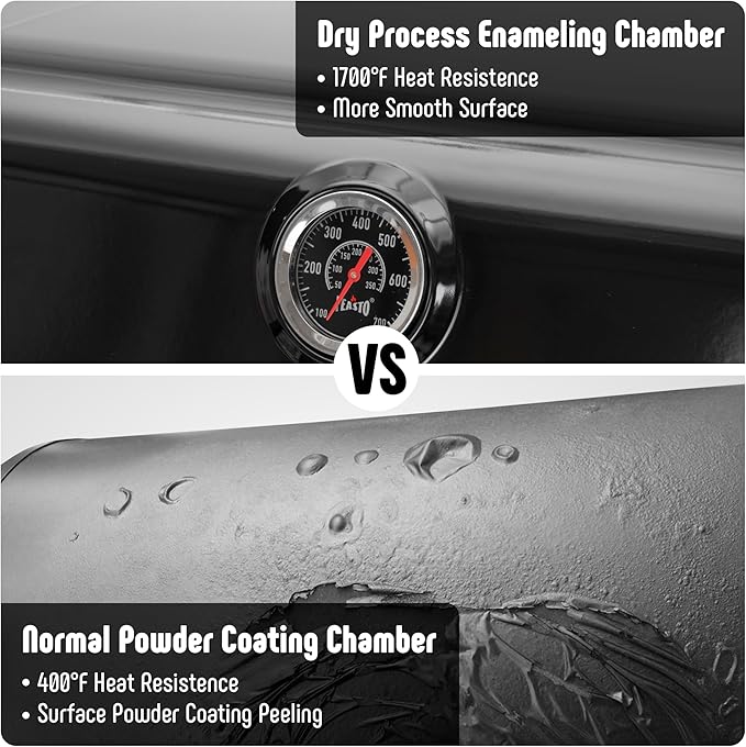 - Porcelain Enameled Grates: Features porcelain-enameled grates for high-temperature resistance, rust prevention, and even heat distribution. The non-stick surface reduces food sticking with effortless cleanup