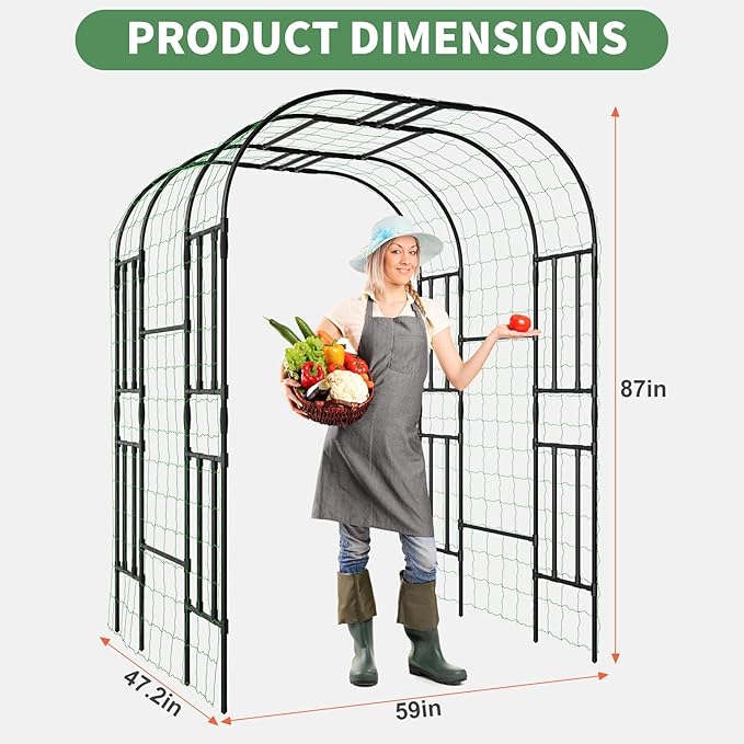 - Optimizes Garden Space: The garden trellis is ideal for growing climbing plants, allowing easy walk-under and harvest. Space-saving vertical plant support forms a cool tunnel