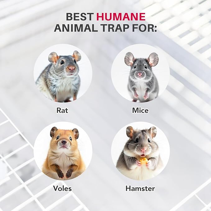 - RELIABLE & REUSABLE: Ideal for humanely capturing/trapping mice, squirrels, chipmunks, voles, shrews, skunks, rabbits, weasels and similar sized nuisance animals.