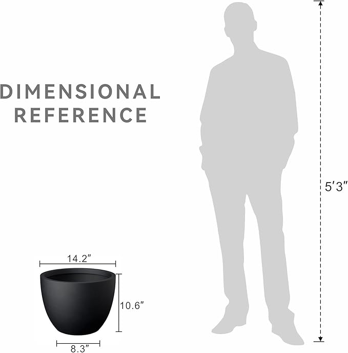 - Generous Growing Space β Thoughtfully crafted to offer plenty of room for healthy and vibrant plant growth, this planter is well-suited for a wide range of plants, from tall trees to resilient succulents and colorful flowers. Its spacious design promotes healthy root development, enhancing the overall growth potential of your plants. The robust construction ensures durability and reliability, making it a source of lasting, stable support for your gardening endeavors.
