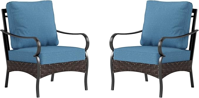 Sophia & William Extra Large Outdoor Patio Sofa Chairs Set 2 PCS Heavy-Duty Porch Furniture with High Back & Deep Seating Area, 5.5" Thicken Cushions for Deck, Lawn, Outside (Navy)