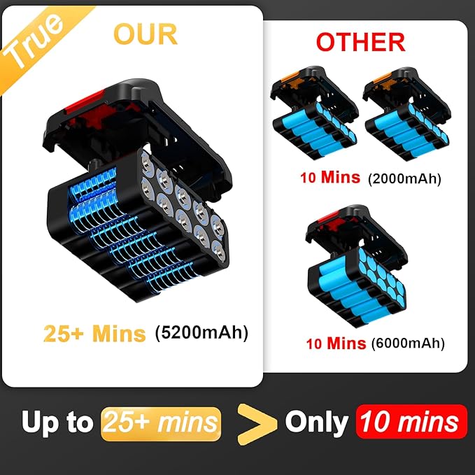 - 【Battery Expert, Super Range】Cordless leaf blower is equipped with a high-capacity 21V, 5.2Ah battery that can be fully recharged in just 4 hours. Provides approximately 120 minutes to 25 minutes of run time depending on the selected speed, equipped with a display to monitor speed mode and battery status at all times