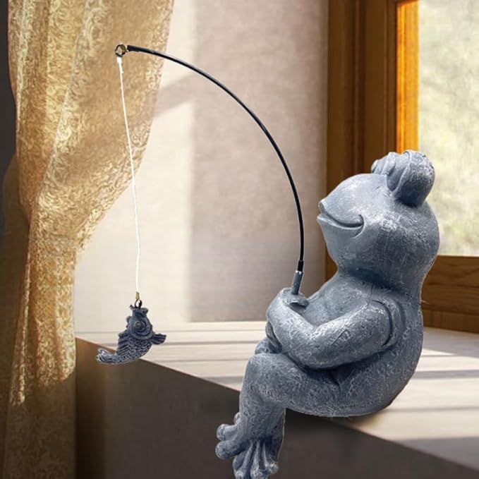 - Compact and Eye-Catching Design: Measuring 9.8"x4.5", this fishing sculpture is the perfect size for any garden decor or small koi pond. Its unique design will stand out, creating a whimsical focal point in your outdoor pond, fence, or table settings.