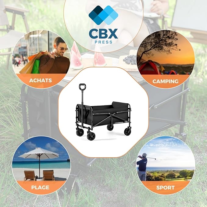 - [WHEELS FOR SMOOTH MOBILITY]: Featuring rugged all-terrain wheels, this collapsible wagon glides effortlessly over grass, sand, gravel, pavement, and uneven surfaces. The 360° rotating front wheels make navigation easy, making it the perfect beach wagon, garden carts, or sports wagon.