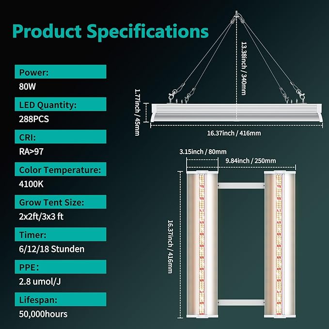 - 【Eyes Protection】This grow light are suitable for planting plants in any indoor application.Sunlight color temperature makes your eyes feel comfortable.It works extremely well for your 2x2/3x3ft grow tent room, plant grow shelves,seedling cultivation,hydroponic rooms,greenhouses,etc.