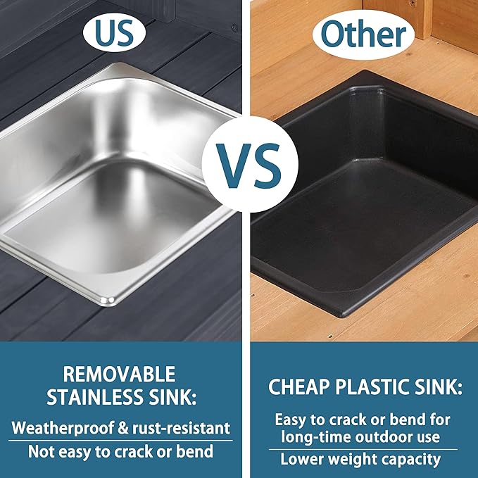 - Removable Stainless Steel Sink - The potting table features a detachable stainless steel sink that is rust and waterproof, allowing for easy watering, cleaning, transplanting, or mixing soil without mess.