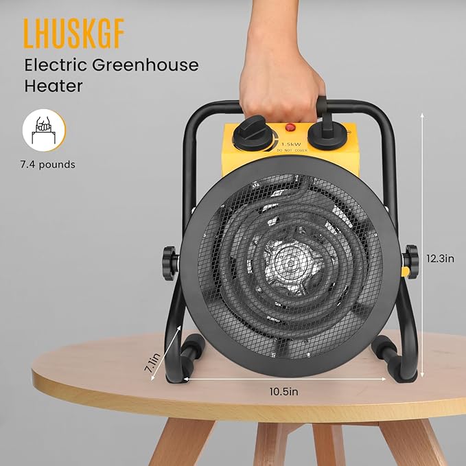 - 【Greenhouse Heater】: The greenhouse heater is equipped with a thermostat that easily heats up to 150 ft ² of space with a 5118 BTU/1500 W heating output for efficiency and energy savings. It can be used in greenhouse, tent, workshop, garage, bedroom, kitchen and other areas.