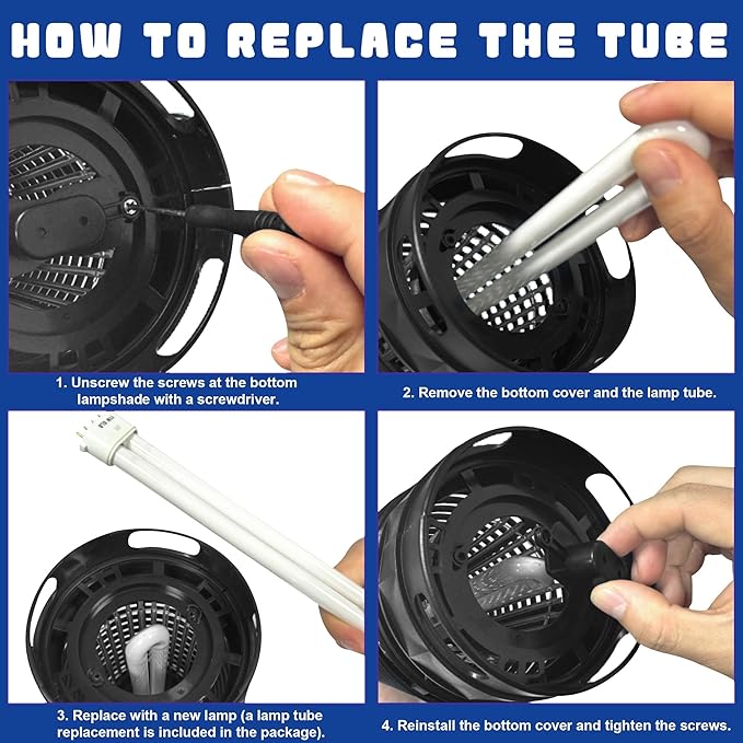 - T8 LIGHT TUBE: Except a T8 light tube is assembled inside the device in advance, it also comes with a same replacement light tube in the package. Unlike other lights, our T8 has a higher luminous efficiency which can reduce 66%~75% energy consumption, and can well serve constantly for 10000~20000 hours. To replace the light tube, please unscrew the bottom lampshade firstly(refer to the use manual for more details).