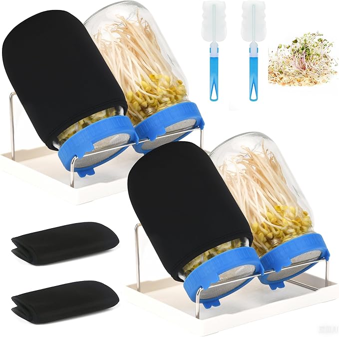 - 【Scientific Design】Bottle mouths are matched with fine mesh lids and sturdy brackets to tilt the jar to the perfect position, allowing your seed sprouts to have good ventilation and drainage-ensuring you get the healthiest sprouts. Shading sets can create the non-light environment you need.
