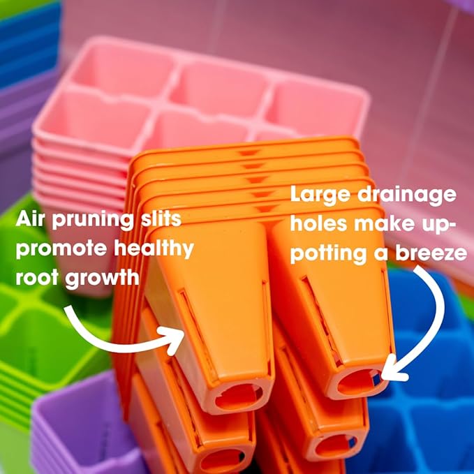 - Complete seed starting kit: 60 professional cell plug inserts, 5 heavy-duty trays, 90 transplant pots, and 5 humidity domes - everything needed to grow your entire garden from seed to transplant