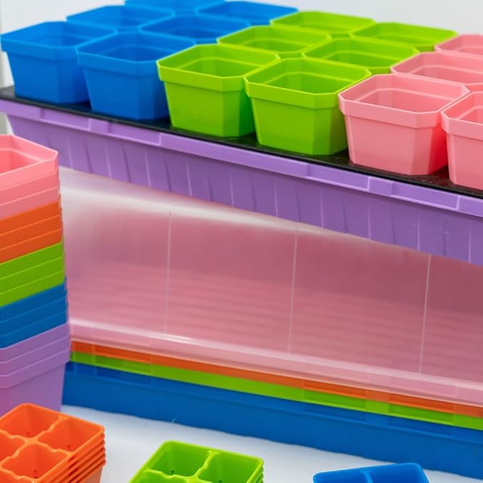 - Complete seed starting kit: 60 professional cell plug inserts, 5 heavy-duty trays, 90 transplant pots - everything needed to grow your entire garden from seed to transplant