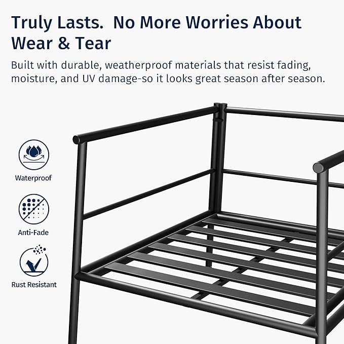 - SIMPLE & EASY SETUP, RIGHT OUT OF THE BOX: The EAST OAK 3-piece patio set offers a straightforward, hassle-free assembly with clear instructions, a step-by-step video, and all accessories included. Simply align the screw holes, tighten them securely, and enjoy your new outdoor space in no time