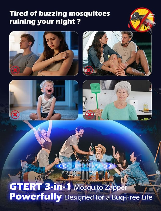 - 【📦 All-In-One Package – Trusted Quality & US-Based Support】Your purchase includes the GTERT bug zapper, a USB-C charging cable, cleaning brush, and a user manual—everything you need to get started. Backed by a 2-year warranty and 30-day money-back guarantee. Whether you're shopping for a dependable bug zapper indoor, a travel-friendly portable bug zapper, or an all-around outdoor bug zapper, this device delivers