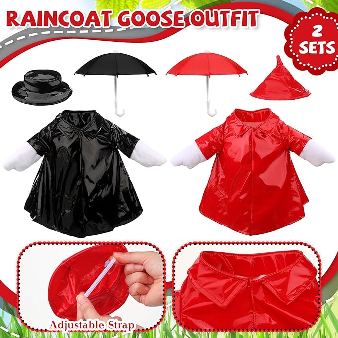 - Red Black Raincoat Style Goose Outfits Decor: the red black raincoat style is designed with an adorable and beautiful aesthetic in mind; The vibrant colors to catch everyone's attention, adding a visually engaging detail to your lawn, garden, or backyard; Dress up your cement or plastic goose in style and watch how they attract admiration
