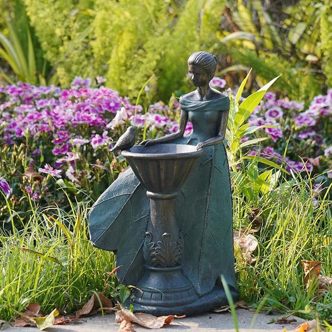 - Bird Bath & Feeder Garden Statue:Practical water basin attracts birds for bathing and drinking, as a feeder platform (add seeds or fruits). Ideal for bird lovers and garden enthusiasts.