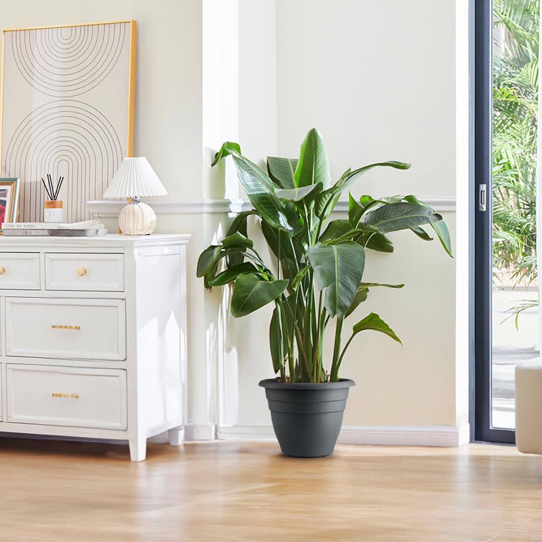 12 Inch Plant Pots, Large Planters for Outdoor Plants, Plastic Flower Pots - Durable and Lightweight with Drainage Holes (3 Packs, Gray)