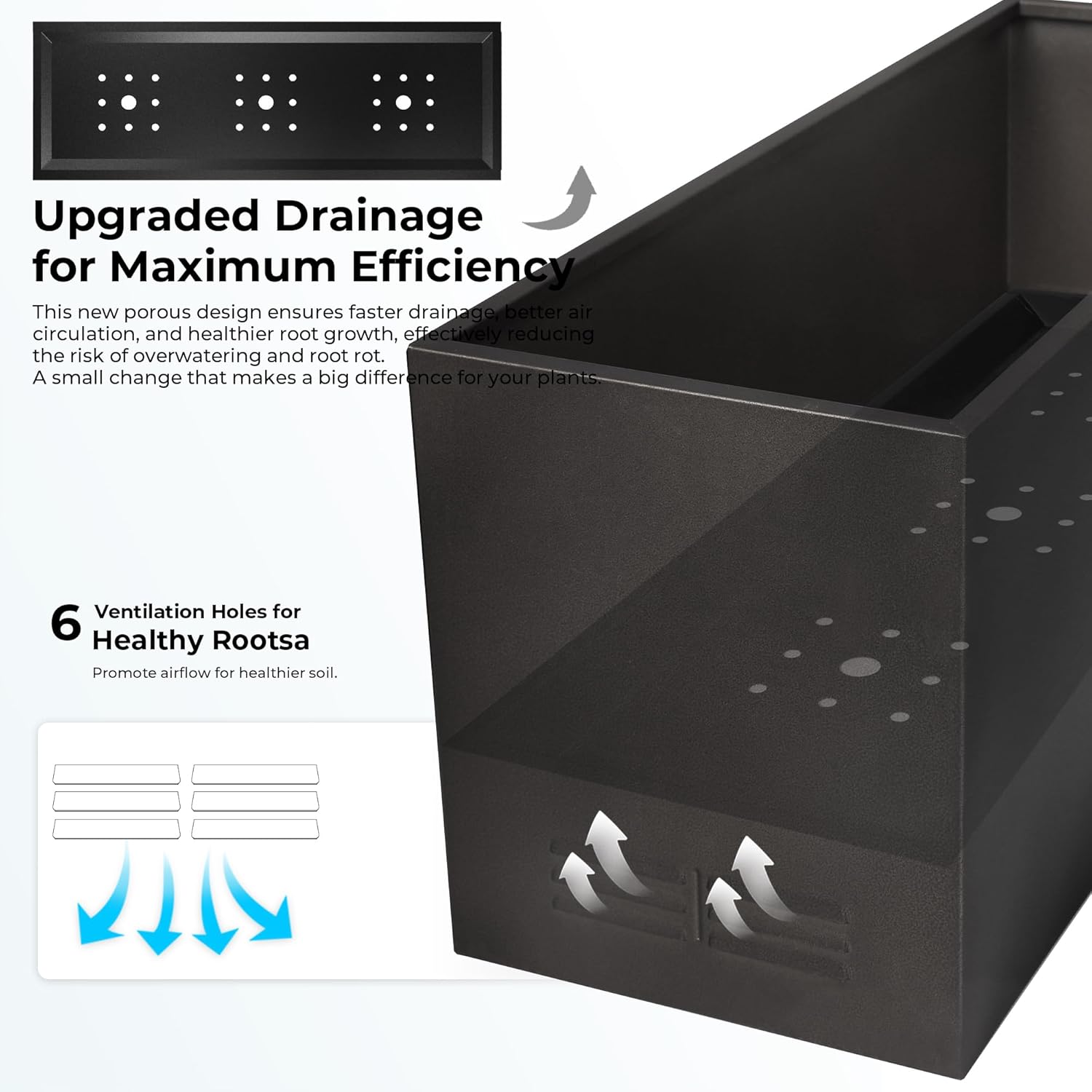 - Removable Insert with Drainage Holes: Includes a convenient removable insert plate with pre-drilled drainage holes to reduce the amount of soil needed to fill the containers and prevent water buildup and promote healthier root systems.