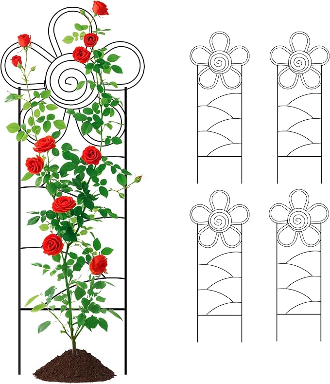 Arifaro Metal Garden Trellis 56″High (Pack of 4) Plant Trellis for Climbing Plants, Outdoor/Indoor Sturdy Plant Trellis for Climbing Vines, Flowers & Garden Plants (Floral)