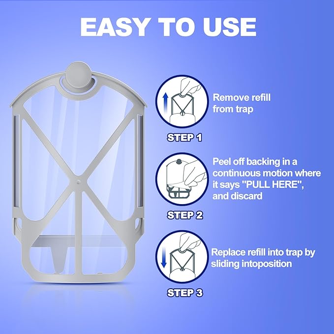 - Easy to Replace: Simply peel off the refill backing and insert it into the trap. To replace, pinch the top to pick it up, you never have to touch an adhesive backing