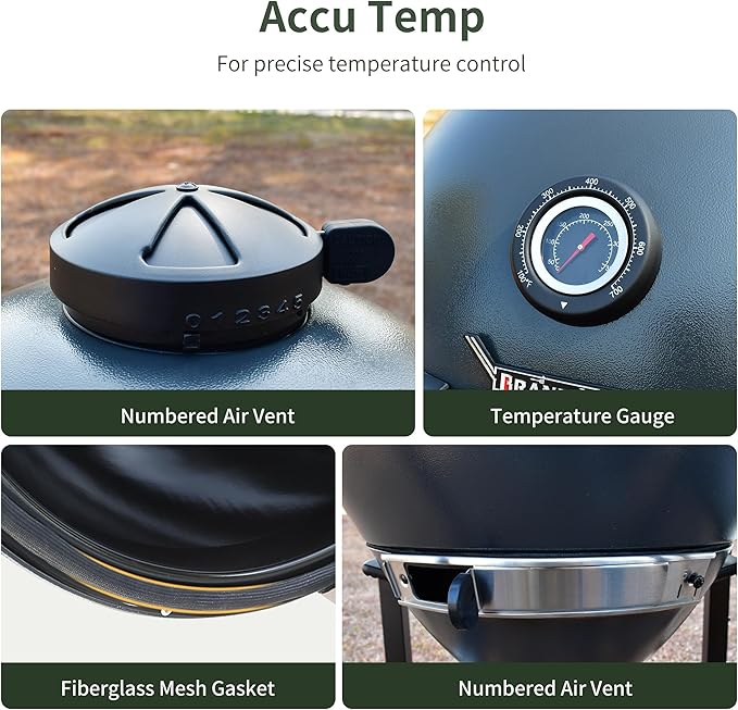 - KAMADO CHARCOAL GRILL: Ideal for intense grilling and slow-cooking, our Kamado-style grill feature a coin-thickness double-layer design and mesh fiberglass gasket for superior heat retention, ensuring your food cooks evenly every time