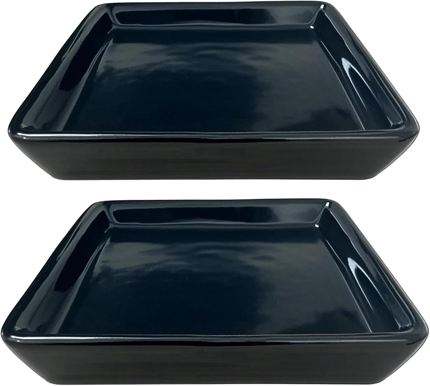 Square Plant Saucer 4 Inch 2 Pack,Plant Trays for Pots, Black Ceramic Plant Saucers for Indoors Outdoors, Plant Drip Tray 4 6 8 10 12 14 Inch