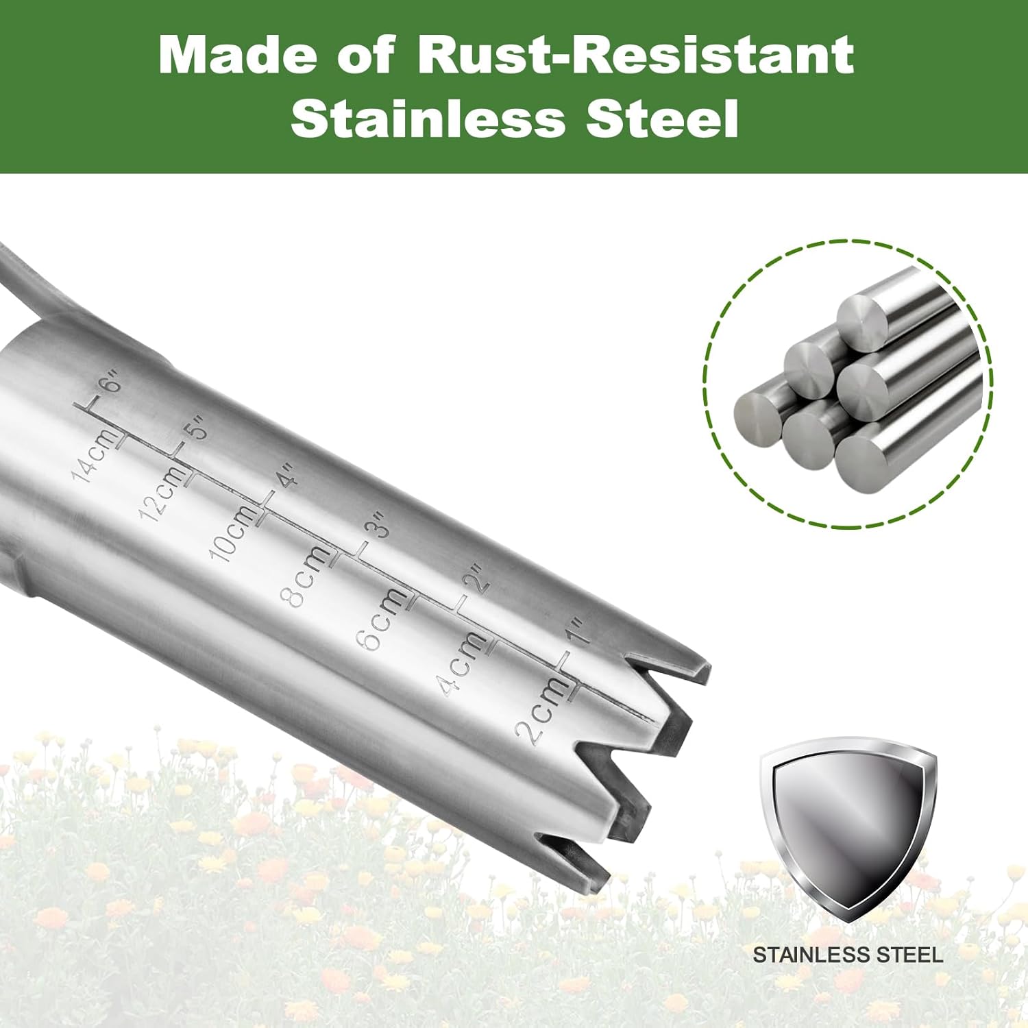 - 【High-Quality Metal Resists Bending】This bulb planting tool is made of thicker stainless steel, which has strong compression and corrosion resistance and is more sturdy and durable, which means it doesn't bend when you push it into the ground. It has sharp edges on the bottom, which can easily cut through heavy soil in your garden.