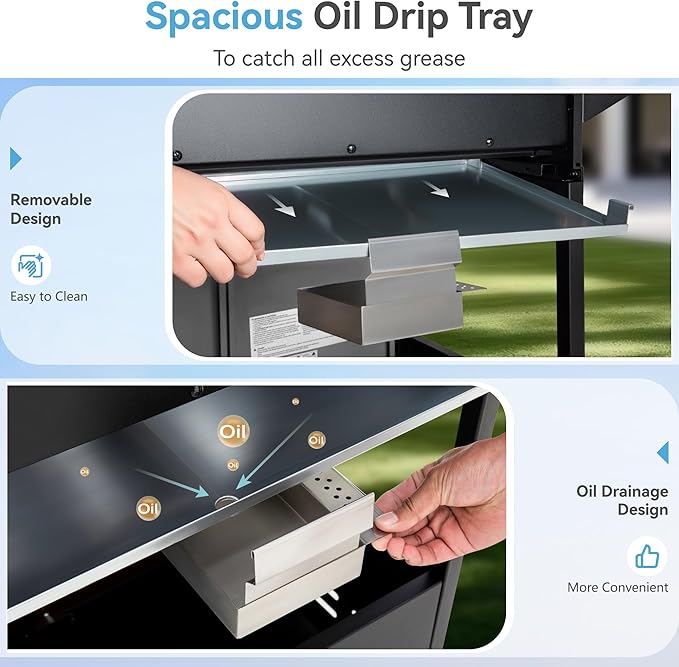 - Special Feature : Built-In Thermometer, Heavy Duty, Removable Grease Tray, Rust Resistant, Warming Rack