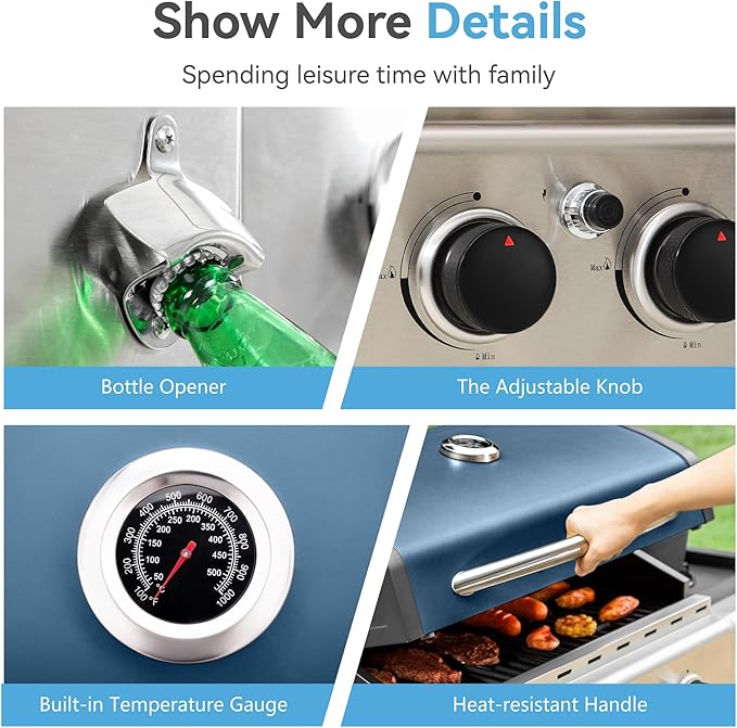 GREEN PARTY 4 Burner BBQ Propane Gas Grill with Side Burner & Porcelain-Enameled Cast Iron Grates, 545 SQIN Grilling Area 42,000 BTUs Barbecue Grill for Outdoor Cooking Garden Patio Backyard, Blue