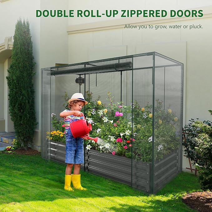 - Zippered Access Door: Equipped with a large zippered access door that can be opened and closed as needed, making your gardening tasks more convenient. You can easily enter and exit through the door to directly access and harvest crops or trim plants